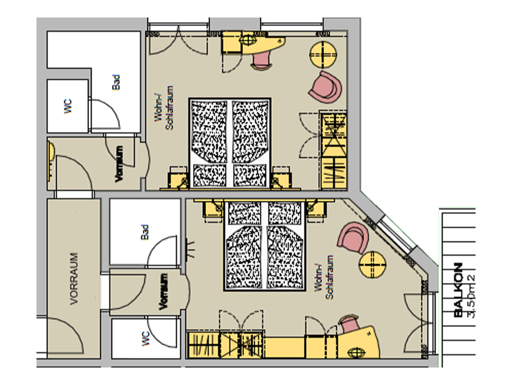 Die sehr begehrten Suiten Großglöckner sind alle mit zwei Schlafräumen ausgestattet, je mit Dusche und WC. Alle Zimmer verfügen selbstverständlich über einen Balkon. Sie haben alle einen großen 32 Zoll Flachbildschirm mit digitalem Kabelempfang mit reichlich Programmen.